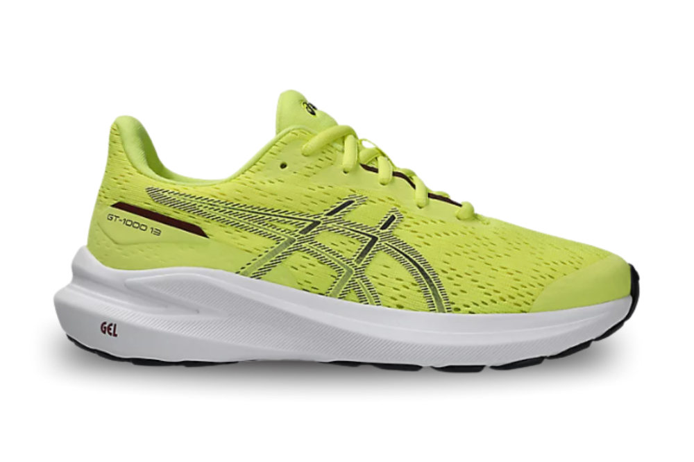 The GT-1000 13 GS runner from Asics is designed for kids. Built to provide stability throughout the midsole, with EVA cushioning and GEL™ technology creating good shock absorption with a softer feel underfoot. Made to last, these shoes offer a more accommodating fit for growing feet, while the solid rubber outsole and medial wrap-up outsole improve durability.